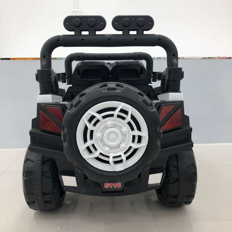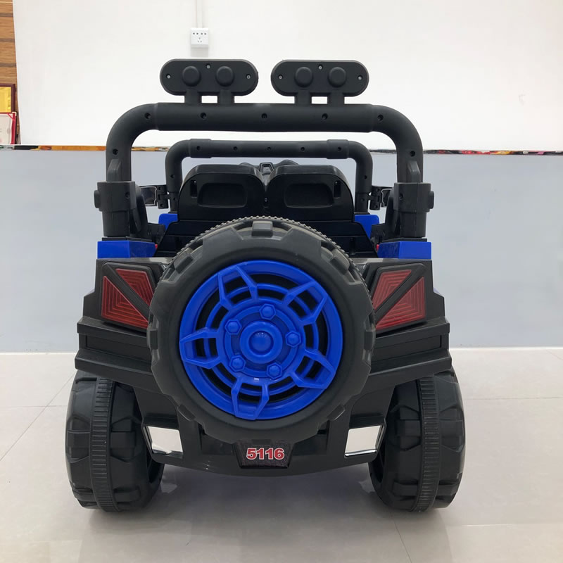 One big battery four motors, 1*12v7A Battery, 390*4 motors, 1*380 steering motor, 1*540 swing motor, 2.4G RC, With Swing, Earlier education function, Soft Start, Two open doors, with spare tyre